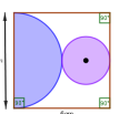 Utilise les informations de la figure ci-dessous admettant un axe de symétrie pour calculer l'aire exacte de la partie non coloriée.