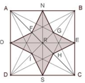 Dans la figure ci-dessous une rose des vents est représentée à l'intérieur du carré $ABCD$ de côté $12\,cm.$