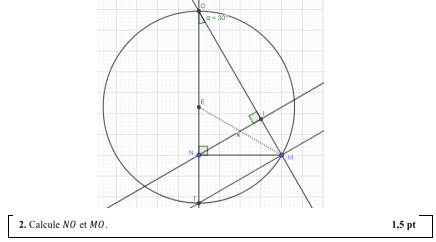 3. Soit $I$ le pied de la hauteur issue de $N.$ Calcule $NI.$