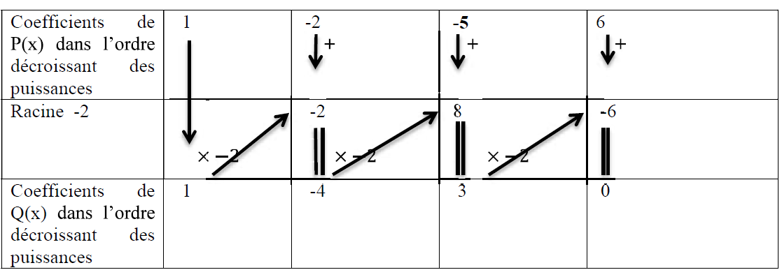 2. Factoriser $x^{3}-2x^{2}-5x+6$ en utilisant la méthode de Horner.
