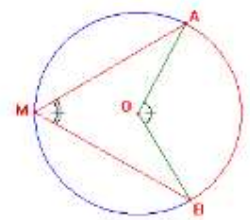 3. Si $(c)$ est un cercle de centre $0$ et $A, B$ et $M$ sont trois points de ce cercle tels que : $mes\overbrace{AMB}=80°$ alors l’angle $mes\overbrace{OAB} = 160°$.