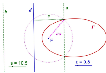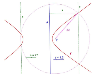 $\begin{array}{lcr} P\in m\cap \Gamma\Leftrightarrow\,P\in m \text{ et }PF=\varepsilon\cdot PD\\