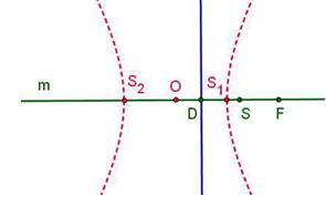 Conclusion : Pour une hyperbole les points $D$, $F$, $S_{1}$, $S_{2}$ et $O$ se présentent dans l'ordre suivant :