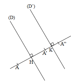 $(D)$ et $\left(D'\right)$ étant deux droites parallèles, faire la symétrie orthogonale par rapport à $(D)$ suivie de la symétrie orthogonale par rapport à $\left(D'\right)$ revient à faire la translation de vecteur .