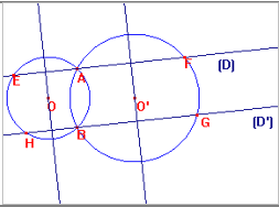 b. Trace respectivement par $O$ et $O'$ les droites $(\Delta)$ et $\left(\Delta'\right)$ perpendiculaires à $(D)$ et $\left(D'\right)$