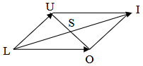Comme $\overrightarrow{LO}+\overrightarrow{LU}=\overrightarrow{LI}$ et $\overrightarrow{LI}=2\overrightarrow{LS}$ on peut conclure que $\overrightarrow{LO}+\overrightarrow{LU}=2\overrightarrow{LS}$